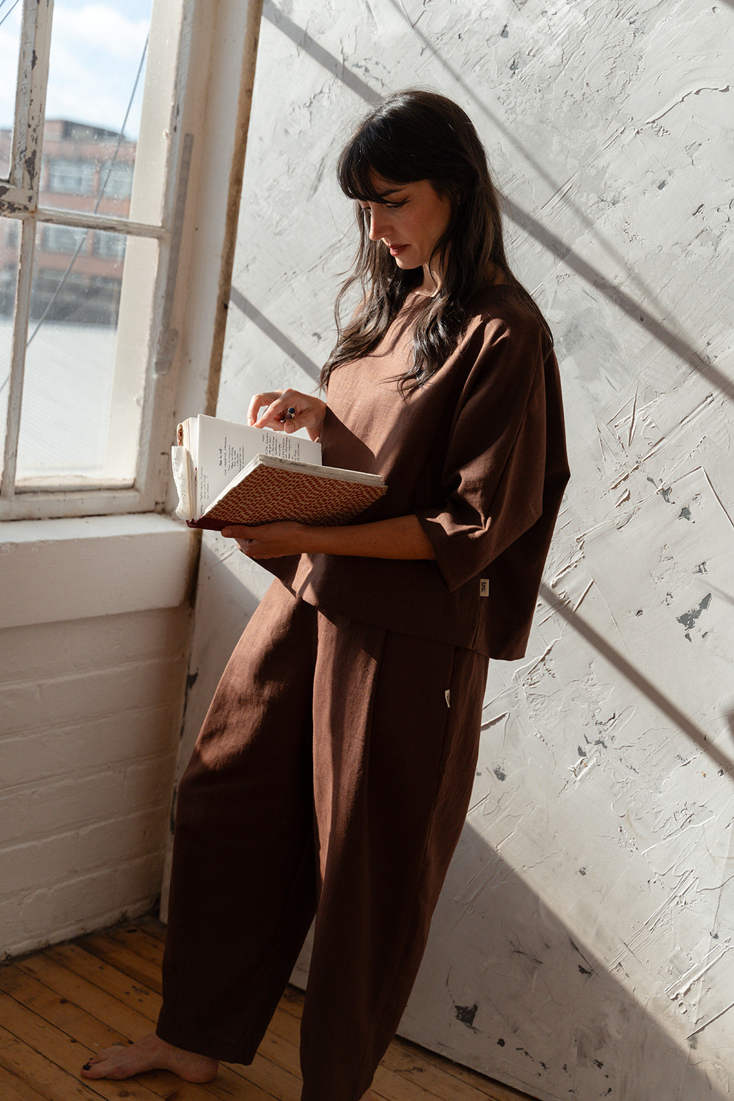 “Every LAW garment is carefully designed and made in our Glasgow studio by Gillian and a small team of skilled machinists, using high-quality natural materials.”